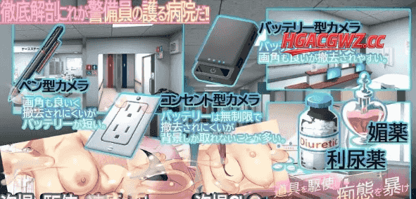 游戏介绍:要窥视医院的黑暗面吗……?「警卫员」系列,于令和时代的医院中新生。【偷拍】【窃听】以及【胁迫】……将极致的医疗从业者逼入绝境……!●故事我是亲爱的邻居。・开朗的专属护士……小夜啼铃芽 CV 遠野琴・王子般的手术护士……春锄つくし CV 湯木千百合・优雅的实习医生……饭丰风子 CV 奥川久美子守护她们的安全与和平,便是我的使命。既然身处此地,就当明白这所医院才是我的家。这是属于我支配下的庭园。来向我献上一切吧。作为警卫的代价,将你们自身交予我──●概念把握她们的行踪,掌握时间安排……!准备就绪后,开始【偷拍】与【窃听】!从工作中的破绽百出,到更衣、排泄、不堪的自慰行为──一旦抓住弱点,便通过呼叫铃传唤,进行【胁迫】与【调○】!美丽的医疗从业者逐渐堕落的过程,将以精美插画与全程语音呈现……!!以患者身份,体验为期一周住院生活的模拟游戏她们时刻处于被窥视的危险中。敏锐察觉【第三者】的暗中活动!阻挠幽会,防止【掠夺】!若失败,她们将落入敌手,从你的掌控中脱离──是任由她们被第三者夺取,走向破灭结局?还是阻止第三者的阴谋,将女主角染上自己的色彩?一切取决于你作为庭园看守的作为……──令和时代的新警卫员,启动──※若结合前作「満車率300% 3≒。」,可额外获得一名可攻略角色作为特典。